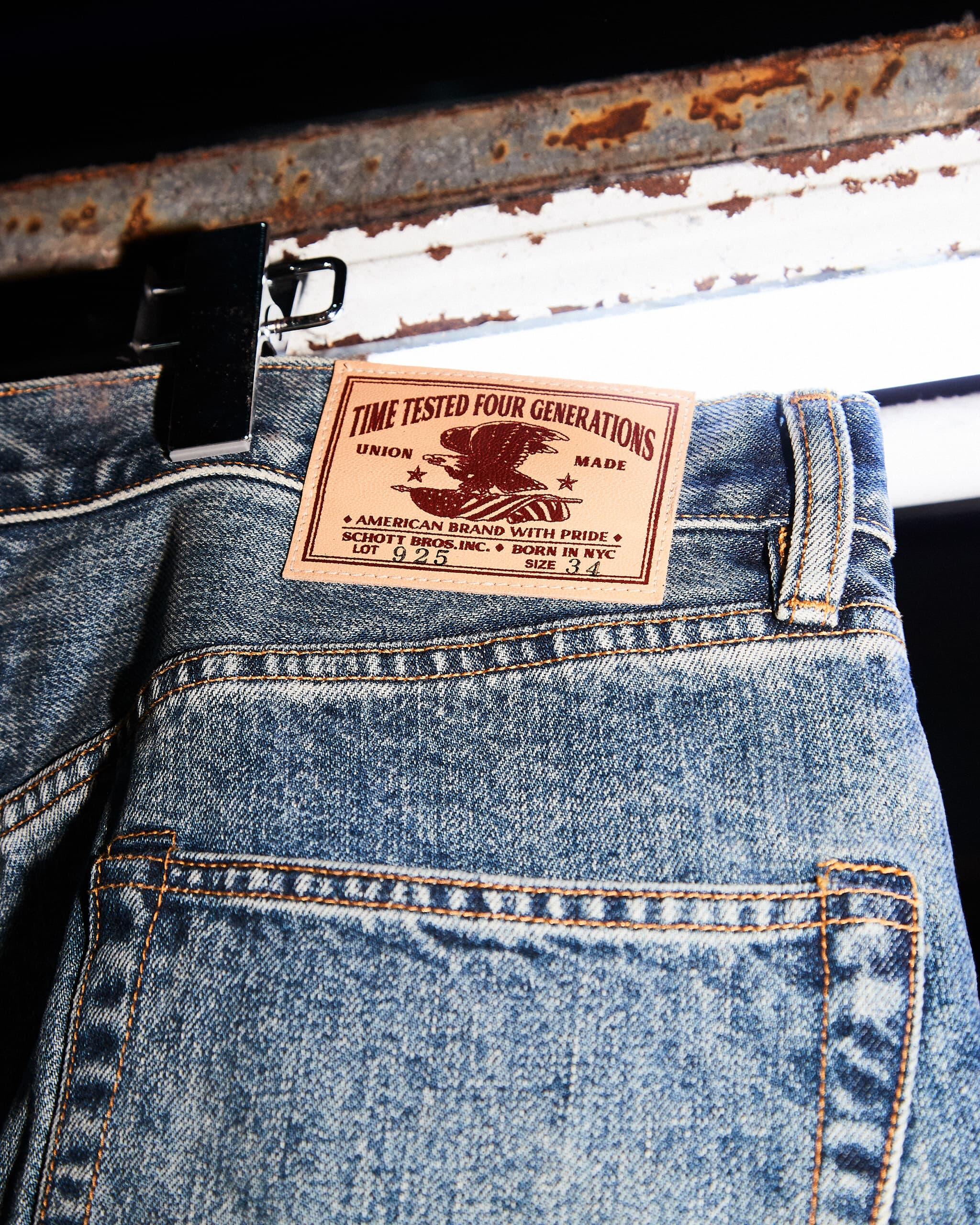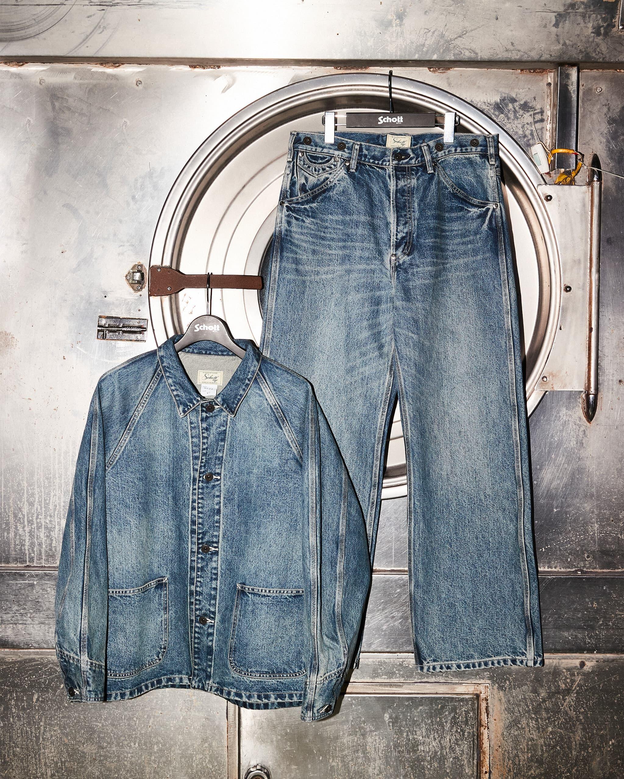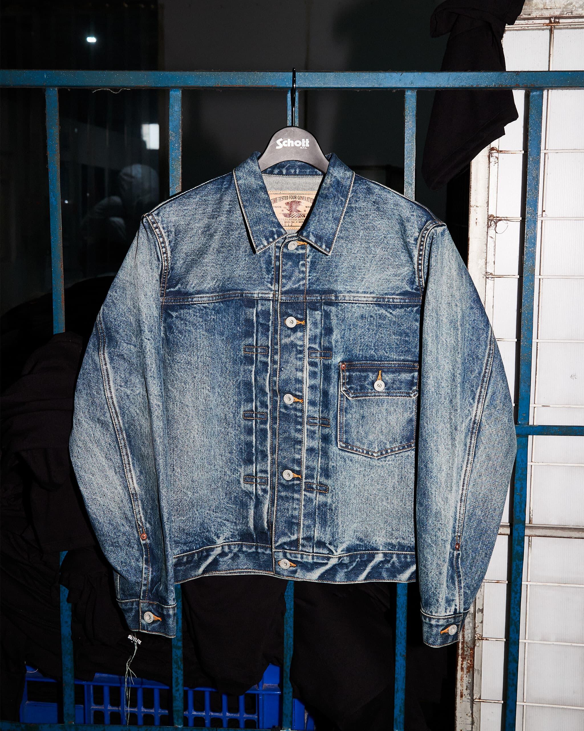 岡山産の14.5ozヘビーデューティーな生地に、アラミド糸を混紡したSchott独自の「FIRE PROOF DENIM」。